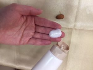 乳液のあとアーモンド粒約1個分をお顔全体にのばし、顔の中心から外側に向かって手のひらでゆっくりクルクル、ハートを描くようになじませます。ほんの60秒もすればみずみずしい明るい肌に仕上がります。あとはティッシュオフだけでOK!夜はもちろん、こんな時は朝も優雅にゆっくりクルクル。