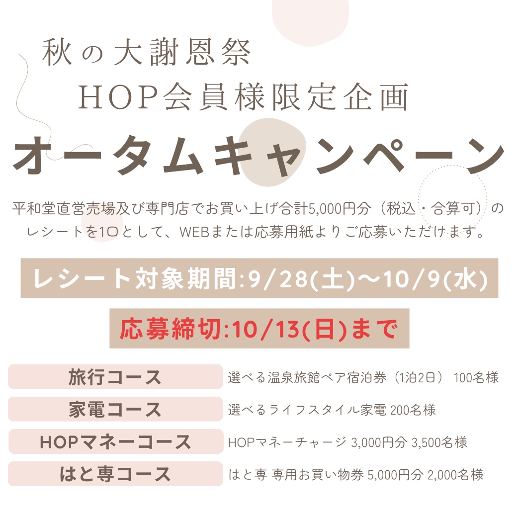 9/28よりHOP会員様限定 オータムキャンペーン!